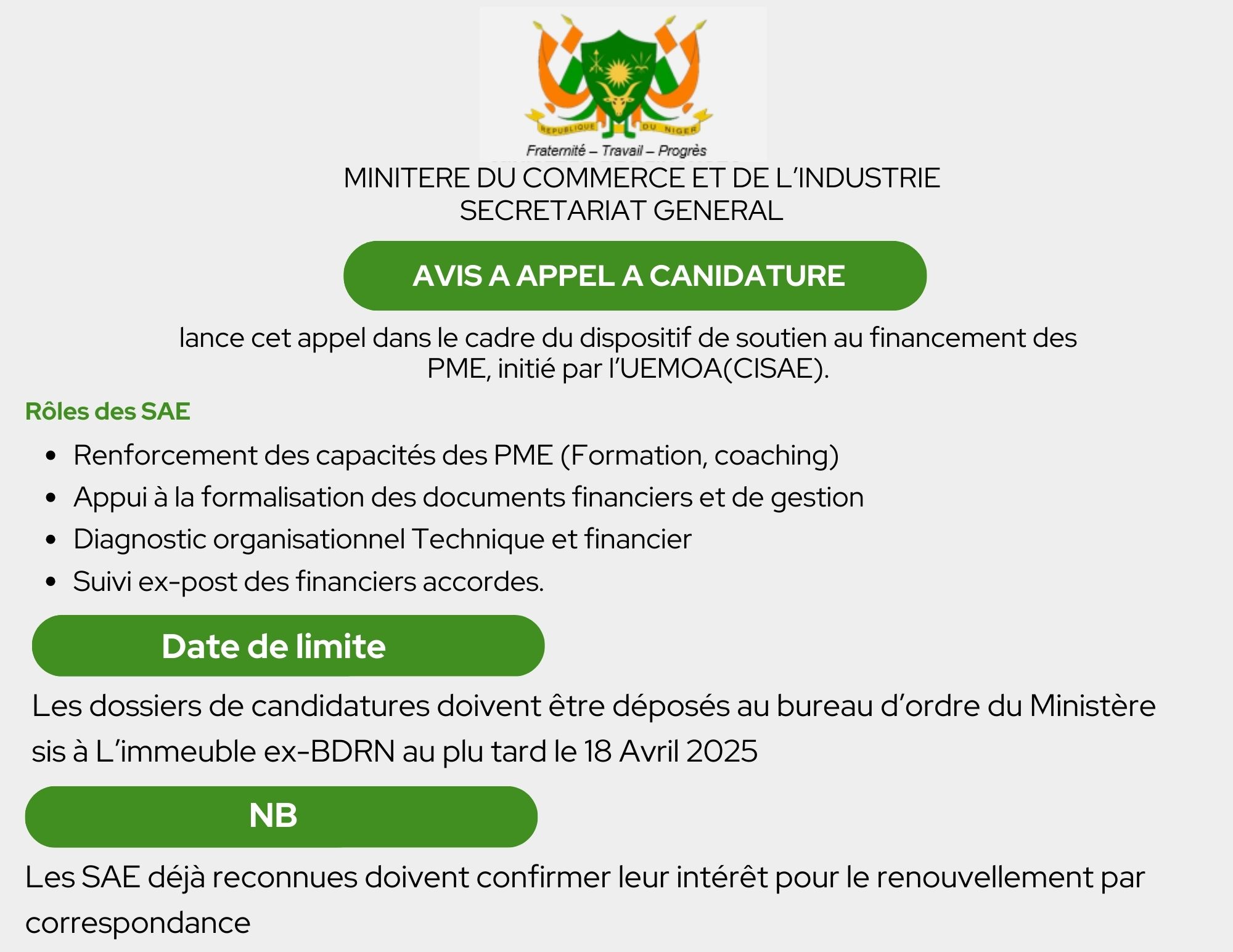 AVIS APPEL A CANDIDATURE DU CISAE AUX STRUCTURES D'APPUI ET D'ENCADREMENT DES PME/PMI (SAE)